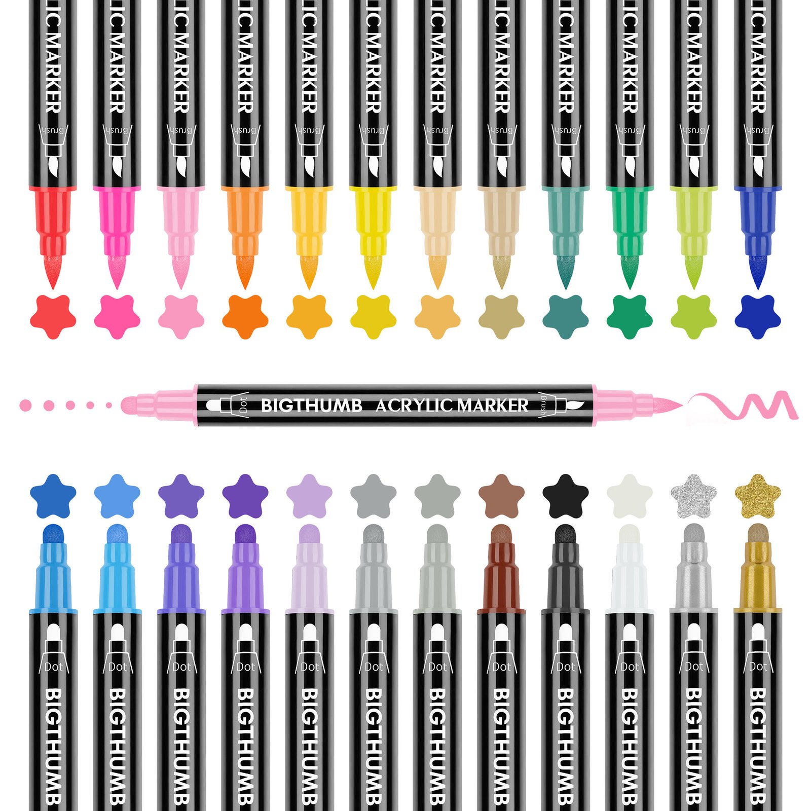 Designed for artists and DIY enthusiasts, the Acrylic Marker Pen MP-002 offers unmatched flexibility and precision with its unique double-headed design. Featuring a small dot tip on one end and a soft-bristled brush on the other, this marker adapts seamlessly to your artistic needs, from intricate dot work to broad strokes.